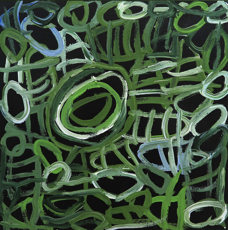 Image: Charmaine Pwerle, Awelye (Women's Ceremony), acrylic on canvas, 30 x 30cm, $400 -