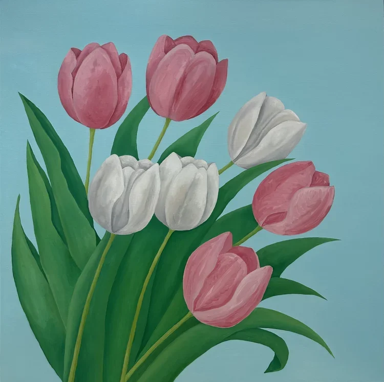 Tulip Bunch 1, Oil Paint on Canvas, 102 x 102 cm, $950