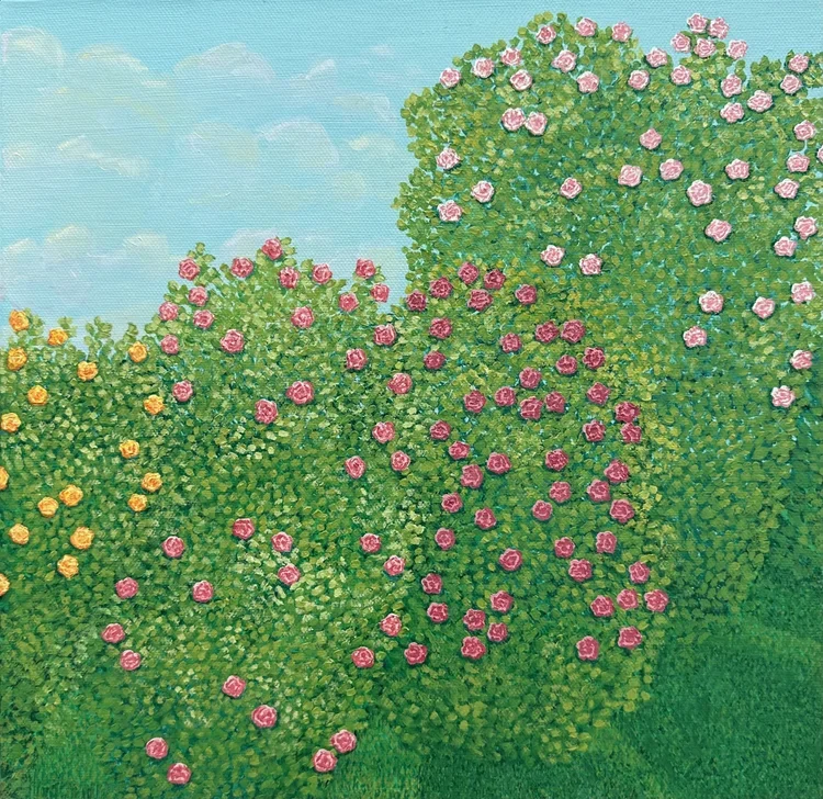 Hedge Haze, Oil Paint on Canvas, 30 x 30 cm, $400